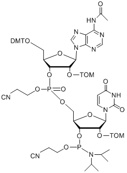 - 5'-O-DMT-2'-TOM-rA (N-Ac)-3'-5'-CNEt phosphate-2'-TOM-rU-3'-CNEt phosphoramidite